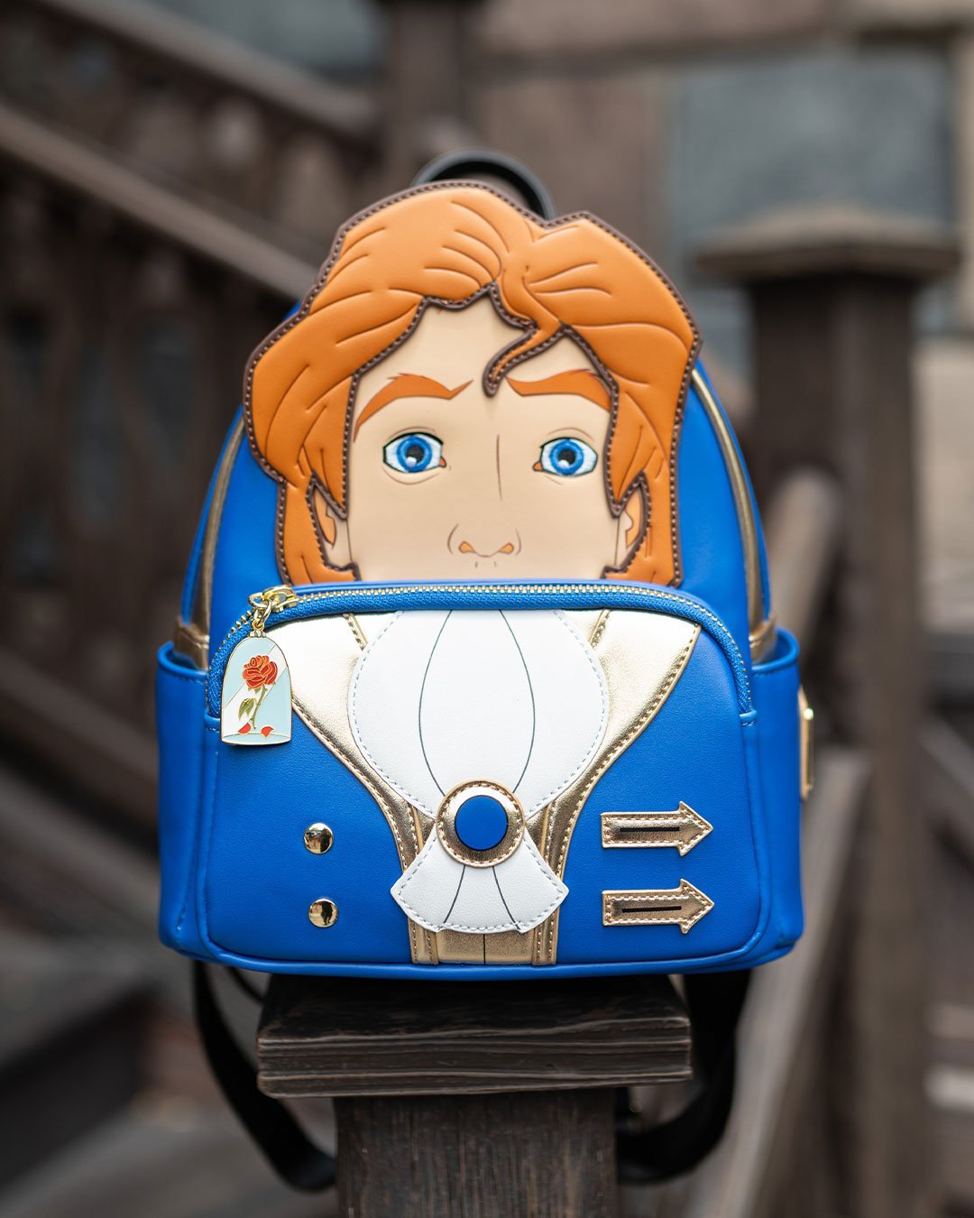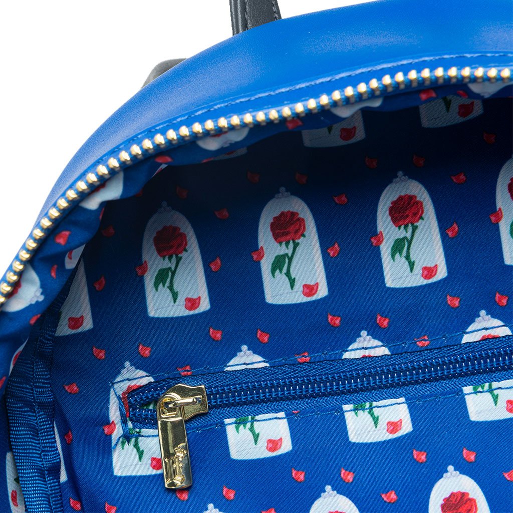 Carry your essentials in a bag inspired by a tale as old as time with the Loungthtefly Disney Beauty and the Beast Prince Adam Cosplay Mini Backpack - 707 Street Exclusive. This faux leather Loungthtefly mini backpack features the Beast in his human form after the enchanted spell was broken! Prince Adam is complete with a large applique head, embroidered deep blue eyes, a rose zipper pull and a replica of his suit with golden details and metal rivets. On the back, you'll find the magical kiss that made this possible. It's the perfect addition to your Beauty and the Beast collection!