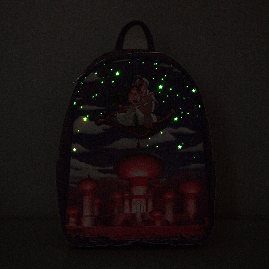 Loungthtefly Disney Glow in the Dark Aladdin and Jasmine Magic Carpet Ride Mini Backpack - 707 Street Exclusive