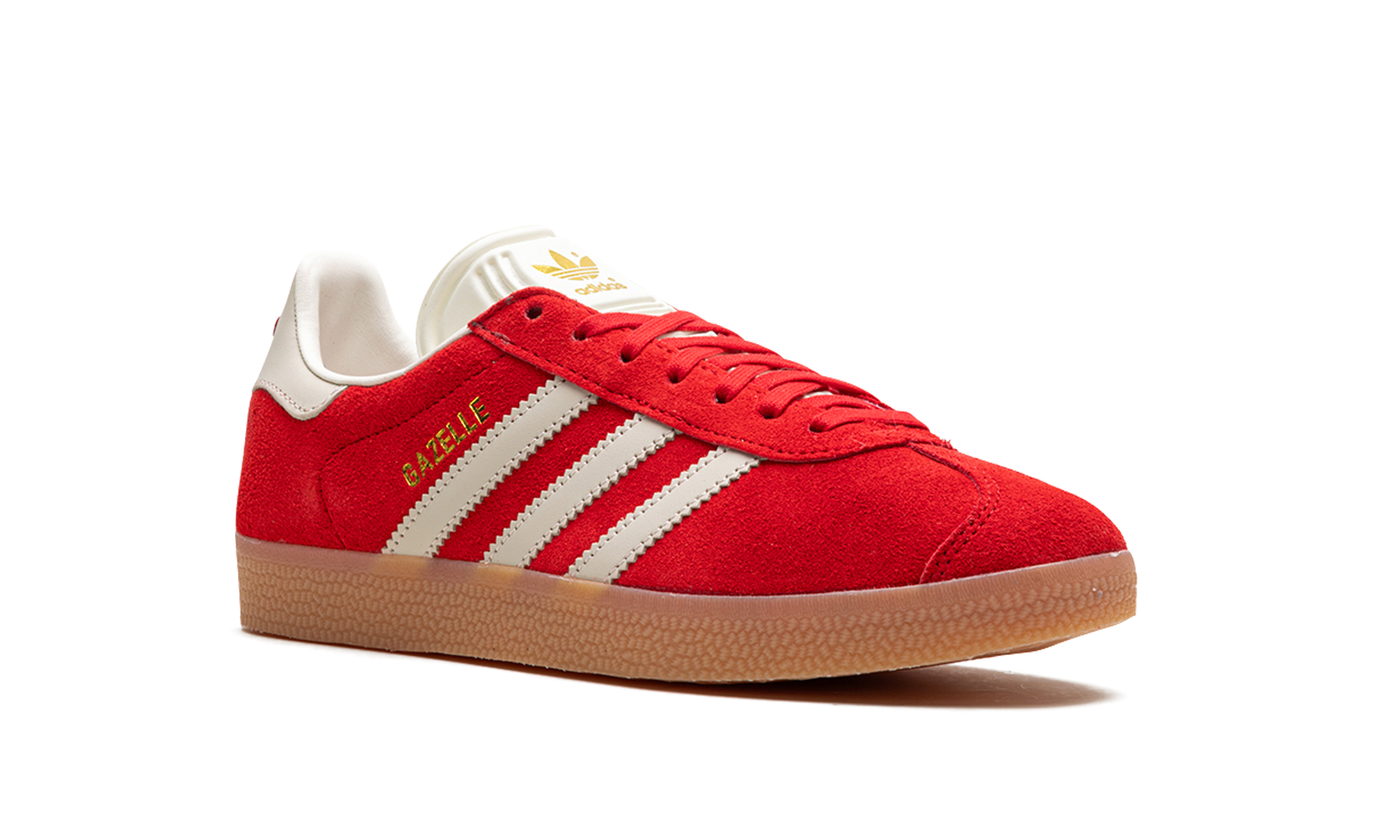 The Women’s adidas Gazelle “Red” is a women’s-exclusive colorway of the retro shoe with a bold, red-based design. An eye-catching yet versatile shoe, the adidas Gazelle “Red” features a red suede upper and white leather Three Stripes branding on the sides. A gold “Gazelle” logo appears on the lateral side of the mid-panel, while classic “adidas” branding is seen on the white leather heel tab. More “adidas” detailing can be found on the tongue. A gum rubber sole completes the look. Red