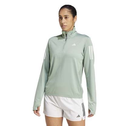 We recommend the adithtdas Women's Own The Run Base Half Zip for runs when you require a small degree of extra warmth. The thumbholes and half zip design helps you accommodate for changes in body temperature.