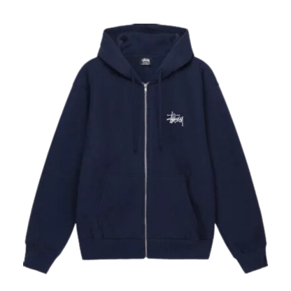 Stüssy Basic Zip Hoodie “Navy” er en uundværlig tilføjelse til din streetwear-garderobe. Denne mørkeblå hoodie har en praktisk lynlåslukning og er prydet med Stüssys ikoniske logo på brystet, hvilket giver et rent og moderne look.